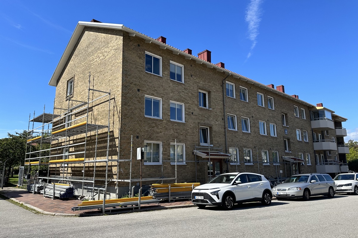 I förra veckan påbörjades ställningsbyggandet på Brf. Langeland i Malmö. Här ska vi utföra en fasadrenovering på cirka 7000 kvm som innebär omfogning, tegel- och balkbyte.