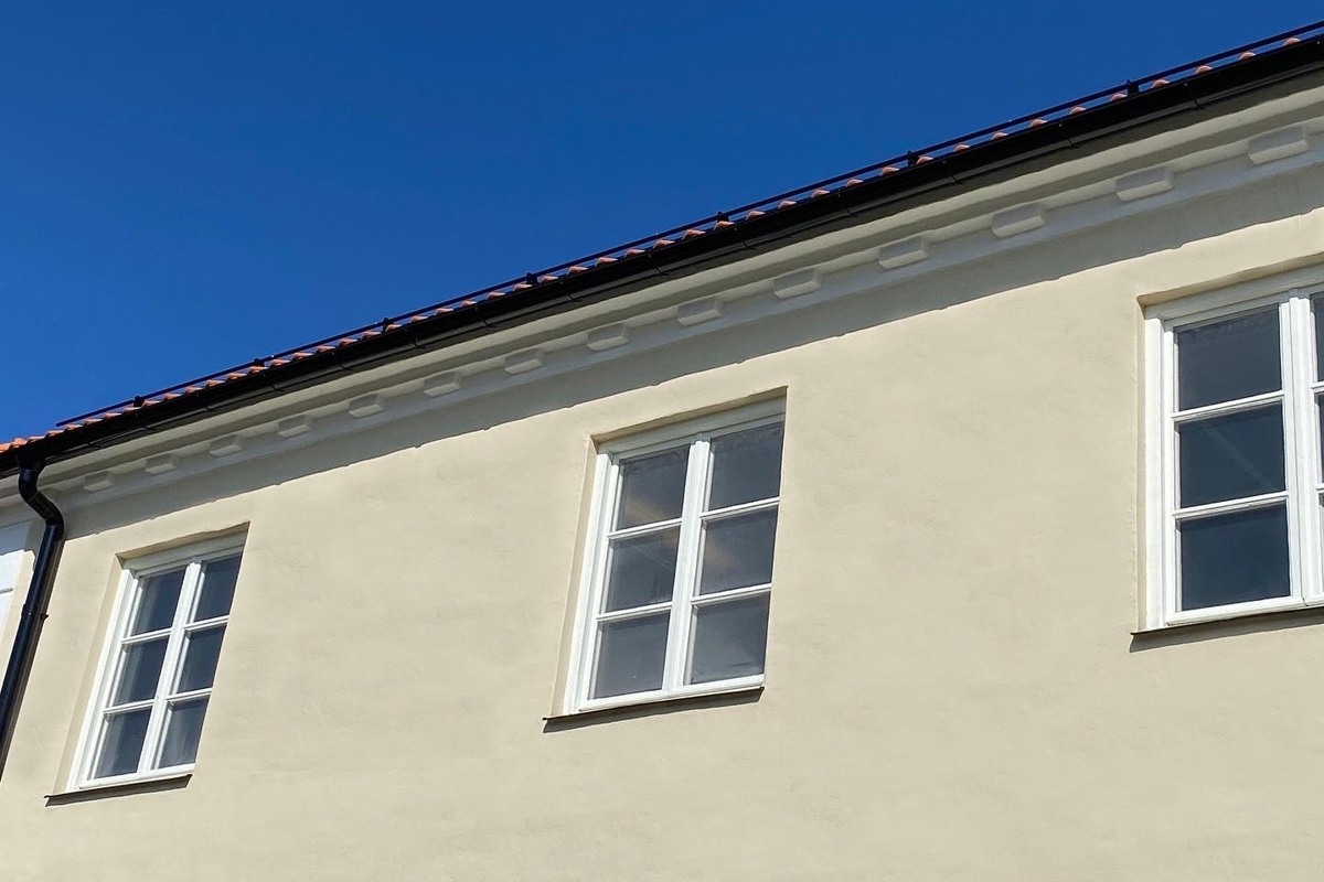 På Campus Vipan har vi gjort en fasadrenovering av diverse utsmyckningar samt fasad med webers bruk.