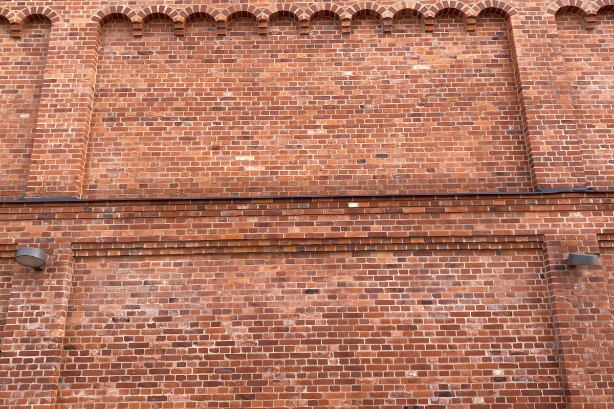 När nytt skall se gamalt ut. Muren på Mobilia i Malmö har vi murat med ny och återvunnen sten från den gamla fabriksbyggnaden.